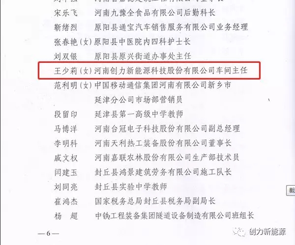 王少莉同志自2008年進(jìn)入創(chuàng)力公司任總裝車間操作員,2010年9月調(diào)入事圓柱電池車間學(xué)習(xí),從一名普通員工,一步一步成長起來,先后擔(dān)任班組長、公司工會女工委員等,從2016年3月起擔(dān)任圓柱電池車間副主任、主任。